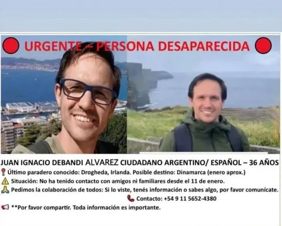 Según informaron sus familiares, los dispositivos electrónicos de Juan Ignacio dejaron de emitir señal el 18 de enero en Marsella, un día antes de que abordara un avión con destino a Barcelona. Hasta el momento, se reportaron búsquedas activas en Francia, Irlanda y España, además de la intervención de INTERPOL.