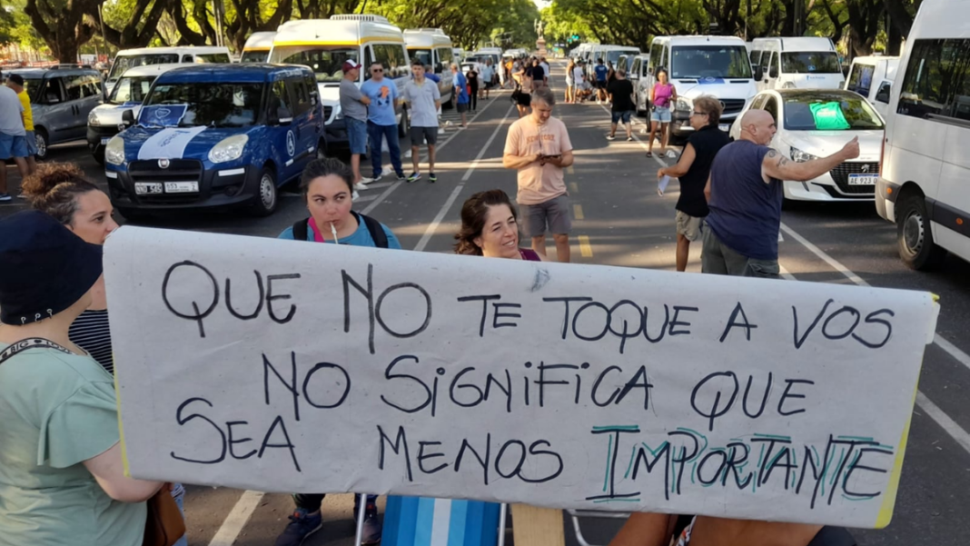 Los transportistas de personas con discapacidad durante una de las tantas protestas llevadas a cabo en el Monumento.