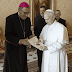 El Monseñor Martín mantuvo un encuentro privado con el sumo pontífice, donde le entregó la presea por los 300 años de la ciudad y una carta de Javkin invitándolo a la ciudad.