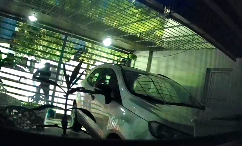 Al llegar al lugar, bomberos y personal policial encontraron las llamas ya activas. Según registraron las cámaras de seguridad del lugar, una persona con casco, que había llegado en una moto, arrojó un bidón con líquido inflamable en el acceso del garage y luego lo prendió fuego con un encendedor. En el interior de la cochera había un vehículo que sufrió daños de consideración.