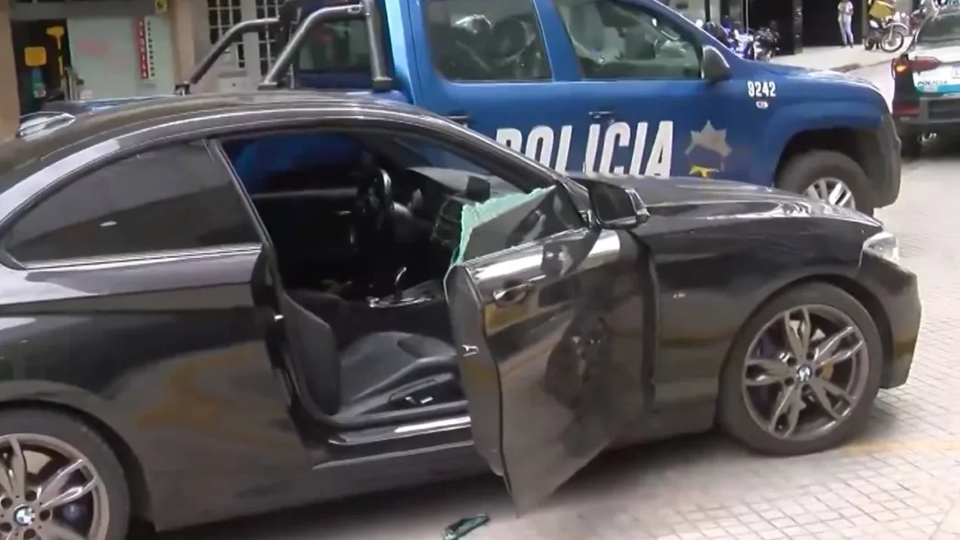La víctima, que conduce un BMW, presupone que lo venían siguiendo aunque aclaró que no había realizado una transacción bancaria, sólo llevaba la computadora y documentación de su trabajo en el maletín.