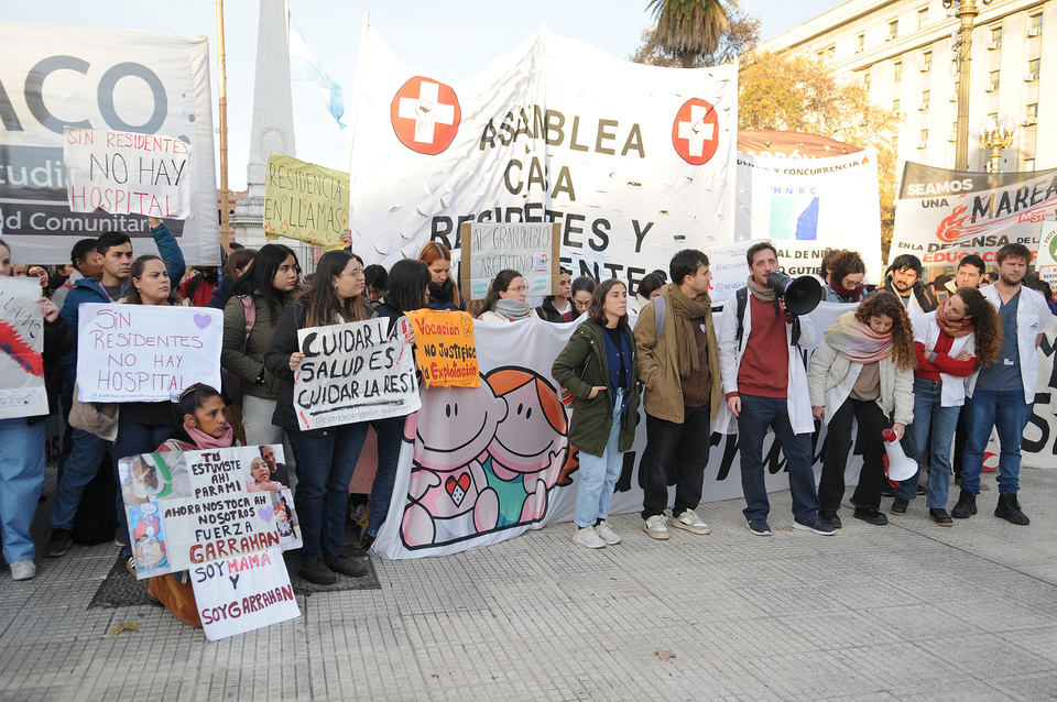 Los médicos residentes de diferentes hospitales confluyeron en un día de reclamos con una movilización matutina y una concentración en Plaza de Mayo a la tarde contra la resolución del Gobierno nacional que degradó su tarea.