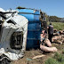El accidente se produjo cuando, por causas que se investigan, el camión mordió la banquina y perdió el control, terminando volcado a unos 15 metros de la ruta.